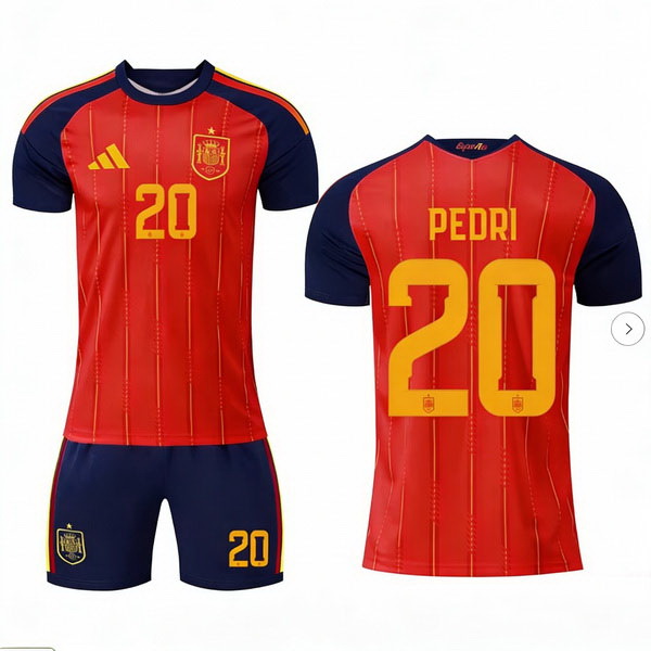 - Men Spain Team 9 Gavi 2024 25 Red Home Soccer Jersey Suit