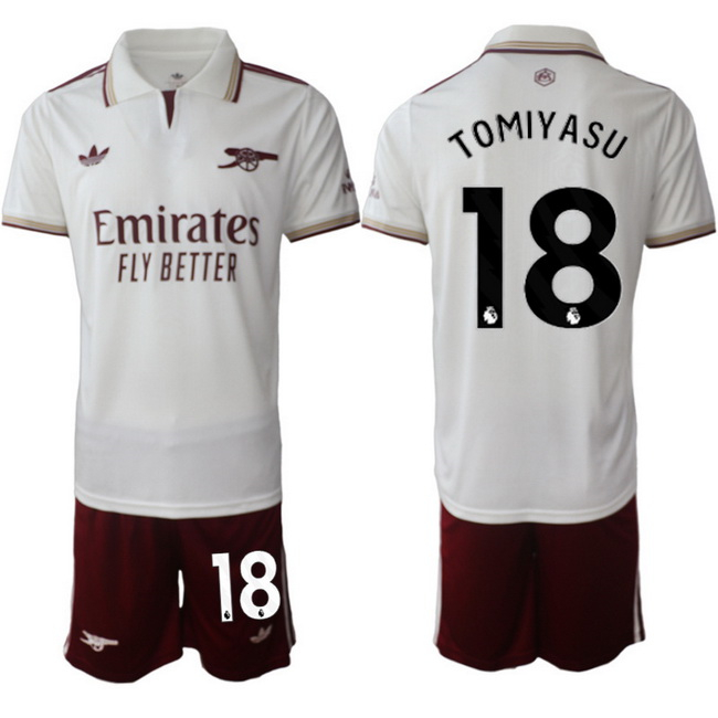 - Men Arsenal FC 4 Ben White Red 2025 Home Soccer Jersey Suit