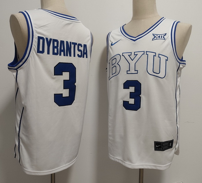 - Men BYU Cougars Nike #3 AJ Dybantsa White Sttiched Basketball Jersey