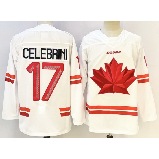 - Men Canada Hockey 17 Macklin Celebrini Red Stitched Jersey