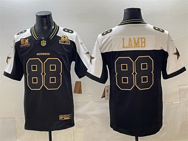- Men Dallas Cowboys 88 CeeDee Lamb White With Patch Cool Base Stitched Baseball Jersey 5