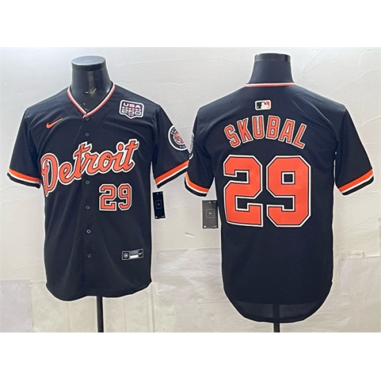 - Men Detroit Tigers Black Team Big Logo Cool Base Stitched Baseball Jersey 3