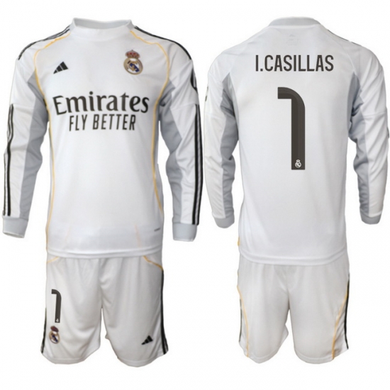 - Men Real Madrid 2026 Soccer Jerseys White Long #1 I.CASILLAS