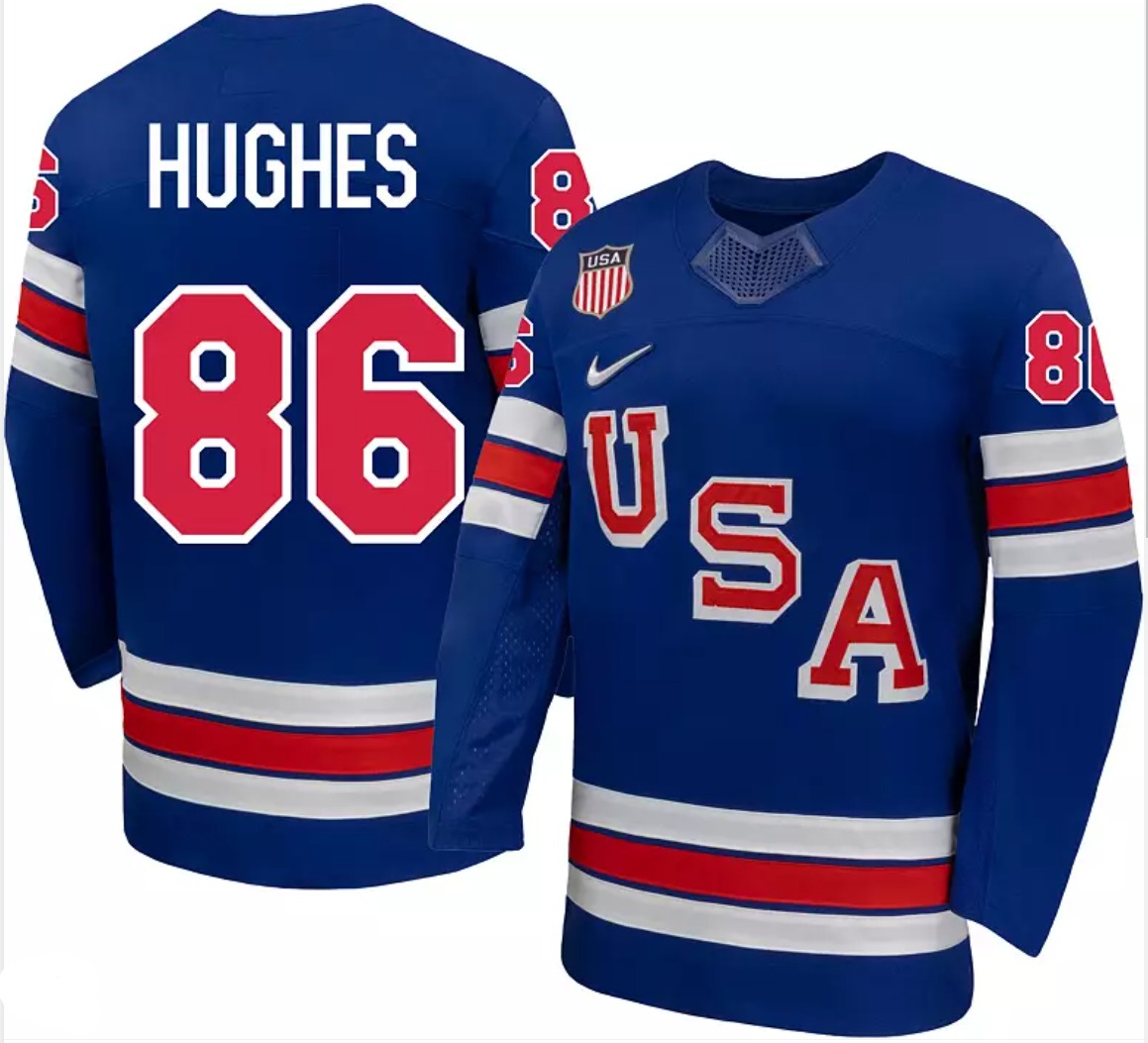 - Men USA 86 Jack Hughes Royal 2025 2026 Stitched Hockey Jersey