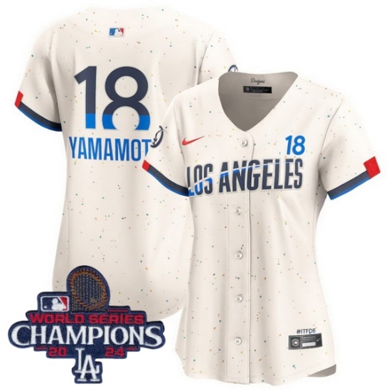 Home>MLB>2024 World Series Champions>Women>Women Nike Los Angeles Dodgers Yoshinobu Yamamoto #18 Ice Cream 2024 World Series Champions Stitched MLB Jersey