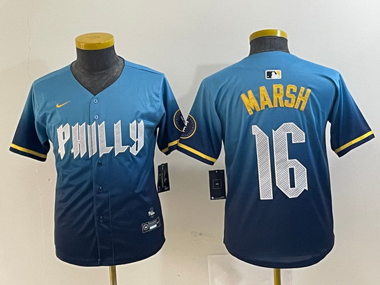 - Youth Philadelphia Phillies 16 Brandon Marsh White Cool Base Stitched Baseball Jersey 1