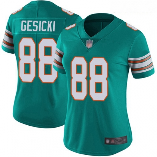 - Dolphins #88 Mike Gesicki White Pink Women Stitched Football Limited Rush Fashion Jersey