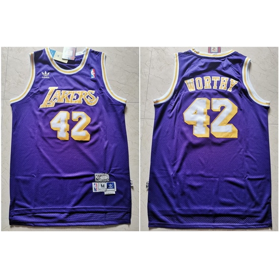 - Mens Mitchell and Ness Los Angeles Lakers 42 James Worthy Authentic Purple Throwback NBA Jersey