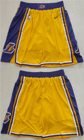 - Men Los Angeles Lakers Gold Purple Shorts 28Run Small 29