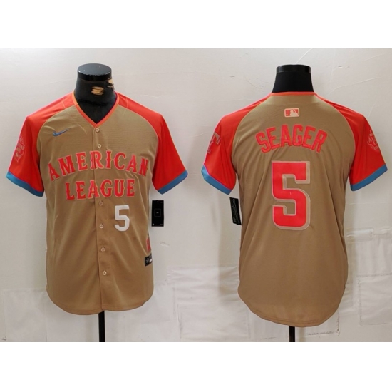 - Men American League 5 Corey Seager Cream 2024 All Star Limited Stitched Baseball Jersey 1