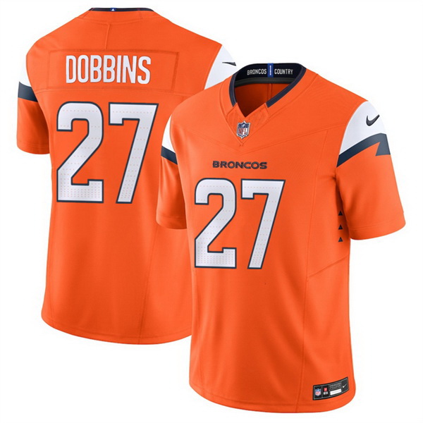 - Men Denver Broncos 12 RJ Harvey Orange 2025 F U S E Vapor Limited Stitched Football Jersey