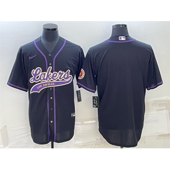 - Men Los Angeles Lakers Purple Big Logo Cool Base Stitched Baseball JerseyS