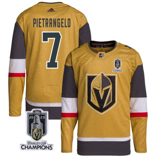 Home>NHL>Vegas Golden Knights>2023 Stanley Cup Champions>Men Women Youth Vegas Golden Knights #7 Alex Pietrangelo Gold 2023 Stanley Cup Champions Stitched Jersey