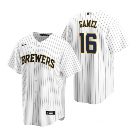 - Mens Majestic Milwaukee Brewers 22 Matt Garza Replica WhiteBlue Strip MLB Jersey