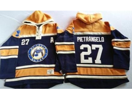 - St. Louis Blues 17 Jaden Schwartz Navy Blue Gold Sawyer Hooded Sweatshirt Stitched Jersey