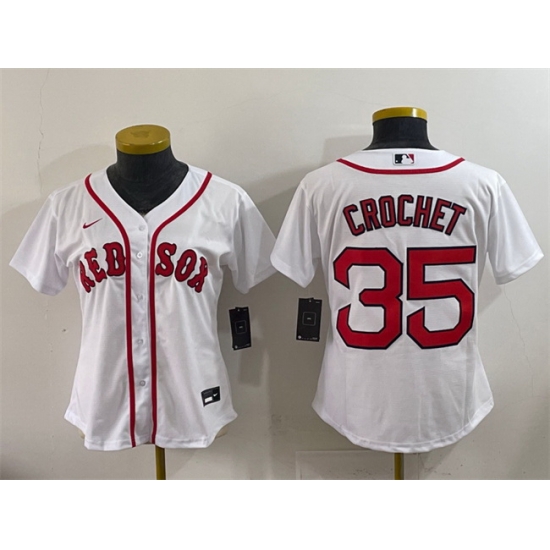 Women Boston Red Sox 35 Garrett Crochet White Cool Base Stitched Baseball Jersey