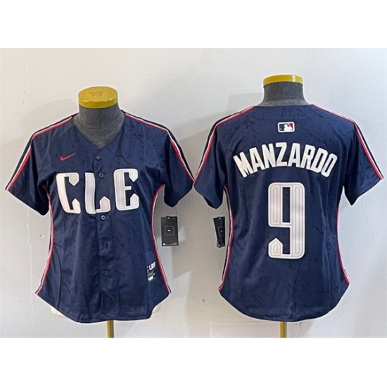 - Women Cleveland Guardians 9 Kyle Manzardo Navy 2024 City Connect Stitched Baseball Jersey 2
