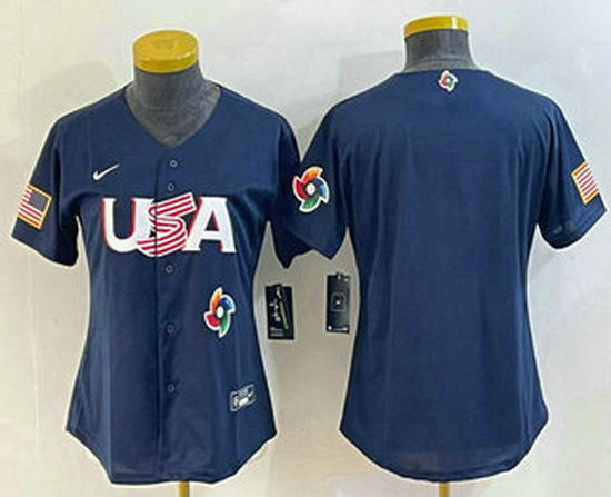 - Women's USA Baseball Blank 2023 Navy World Classic Stitched Jerseys