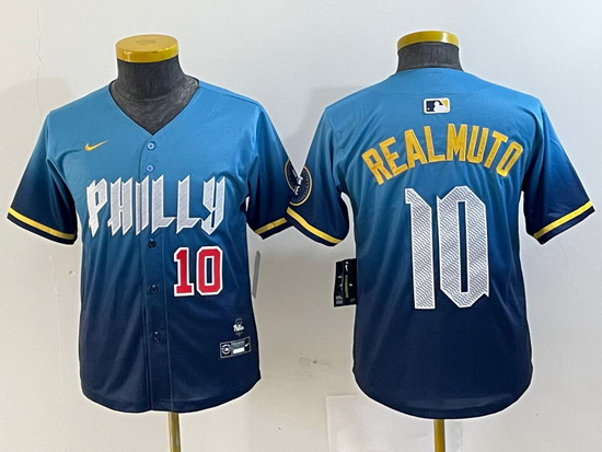 - Youth Philadelphia Phillies Team Big Logo Blue Cool Base Stitched Baseball Jersey 5