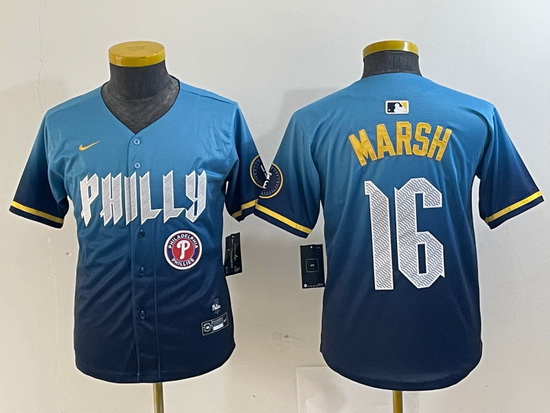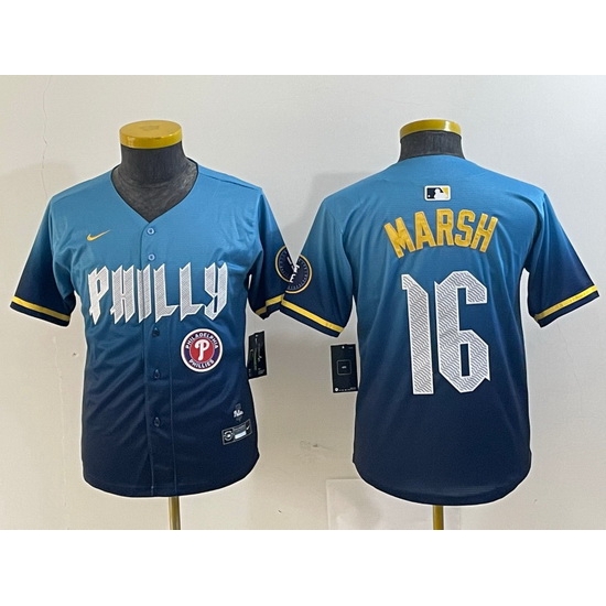 - Youth Philadelphia Phillies 28 Alec Bohm Blue Cool Base Stitched Baseball Jersey 2